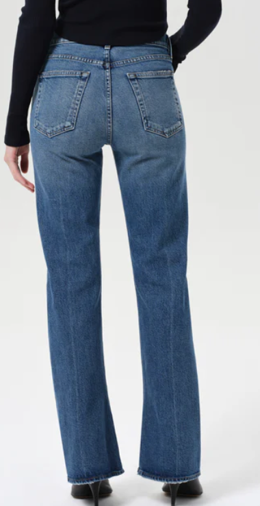 A modern bootcut with a mid-rise waist, this silhouette fits slim through the hip and opens into a subtle kick at the hem. Crafted from comfort stretch regenerative cotton denim with a soft hand, it’s finished in a medium indigo wash with worn-in fading and whiskering for an authentically vintage feel. Pair with a slim knit or boxy tee to strike the right balance.
