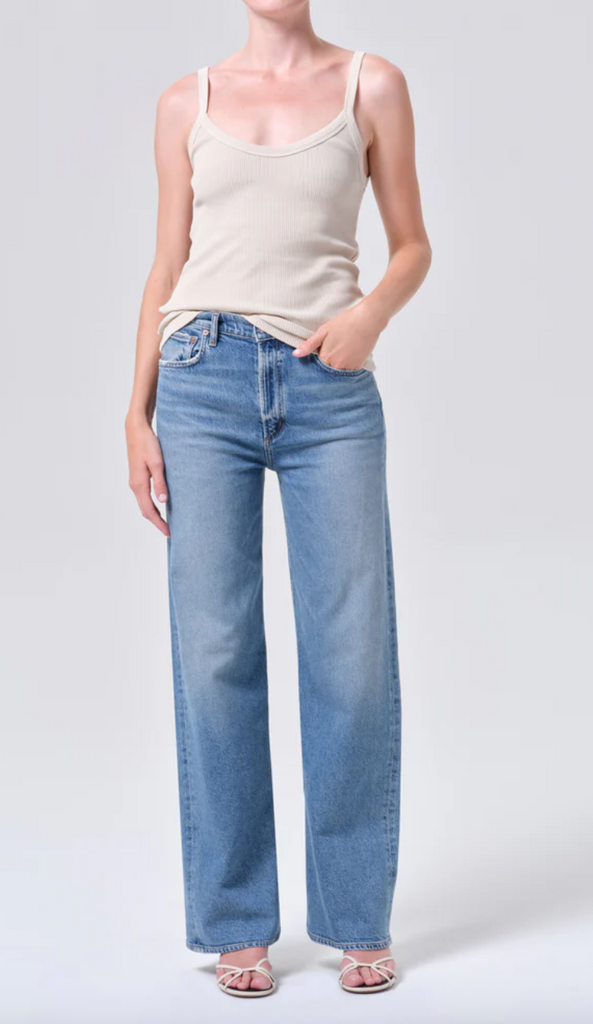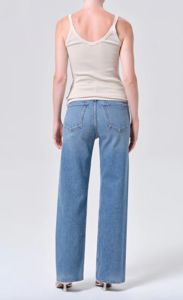A high-rise wide-leg silhouette, the Ren Jean features a flattering high waist, a relaxed fit through the hips, and an easy, elongated leg shape — now offered in a full-length 32-inch inseam for an even more lengthening effect. Rendered in a medium washed-out tinted indigo, it delivers a soft, lived-in look with everyday versatility. Crafted from soft, breathable regenerative cotton denim blended with EcoMade Fiber for light stretch and natural movement, it offers a comfortable worn-in feeling while maintaining a clean, structured finish.