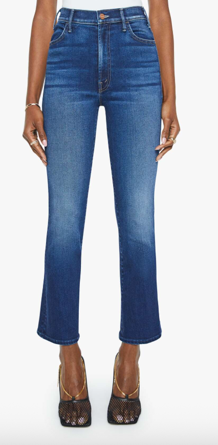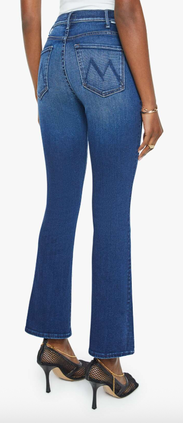 Roll the dice. This bestselling high-rise flare has an ankle-length inseam and a clean hem. Made from stretch denim, Taking Chances is a dark blue wash with whiskering and fading at the knees.