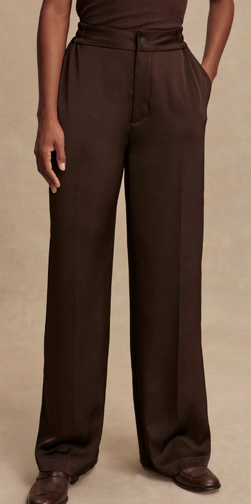 Made from soft satin, the Bryden wide-leg pants are here to elevate your modern wardrobe. With beautiful drape and sheen, these wide leg satin trousers are an elegant statement. Elevated by front pleat detailing, they're finished with an elasticated waistband for optimal comfort.