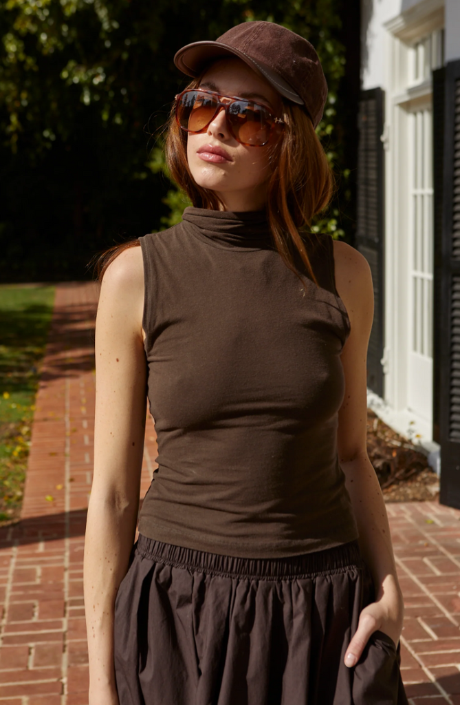 The Tessa Turtleneck Tank offers a sleek fitted silhouette and high gathered neck. Made from soft buttery fabric that feels like second skin. It’s perfect for layering or wearing on its own for an effortless, minimal look.