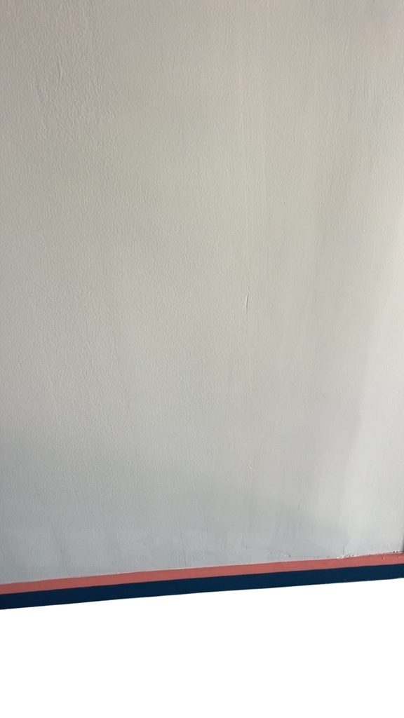 The image depicts a simple, plain wall with a baseboard at the bottom. There are no visible clothing items or fashion accessories in the picture.