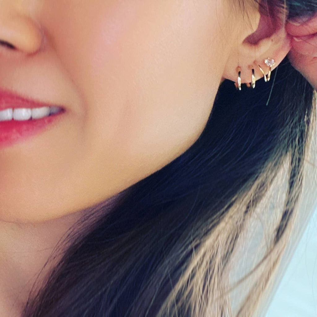 Create this cool illusion of two piercings in one hoop.  Size: 1/2" Brass base metal, plated.  Made in Korea.