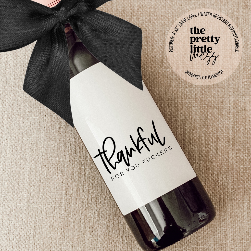 ABOUT OUR LABELS • Professional gloss polyester material • Water-Resistant and Repositionable Wine Labels • Simply Peel and Stick • Every Label is packaged individually in a clear cellophane slip, with a cardstock insert that has application tips and tricks. Small 4”x4” – Fits a Standard 750ml wine bottle (typically with longer curvier bottle necks)