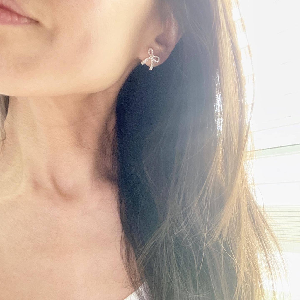 Size: 1/2" Sterling silver post. Cubic Zirconia stones. Brass base metal, plated.  Handmade in Korea.