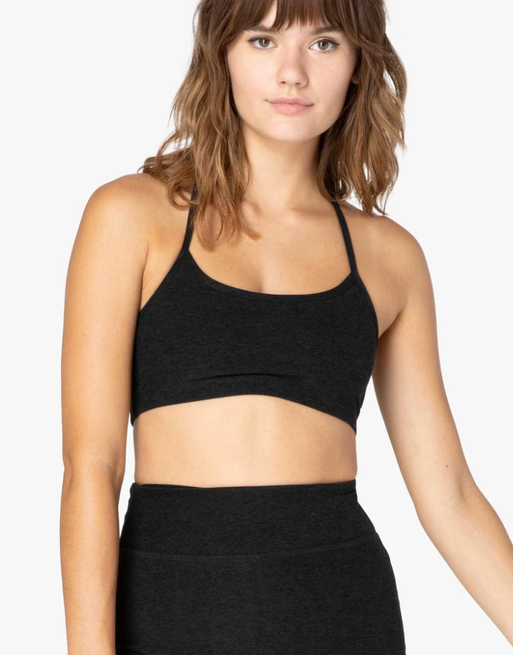 The bra version of our best-selling Spacedye Slim Racerback Cropped Tank, this ultra soft Spacedye bra features a skinny racerback and keyhole. With moisture wicking, quick dry, and UV protection, this cozy layer is perfect for both working out and everyday wear.
