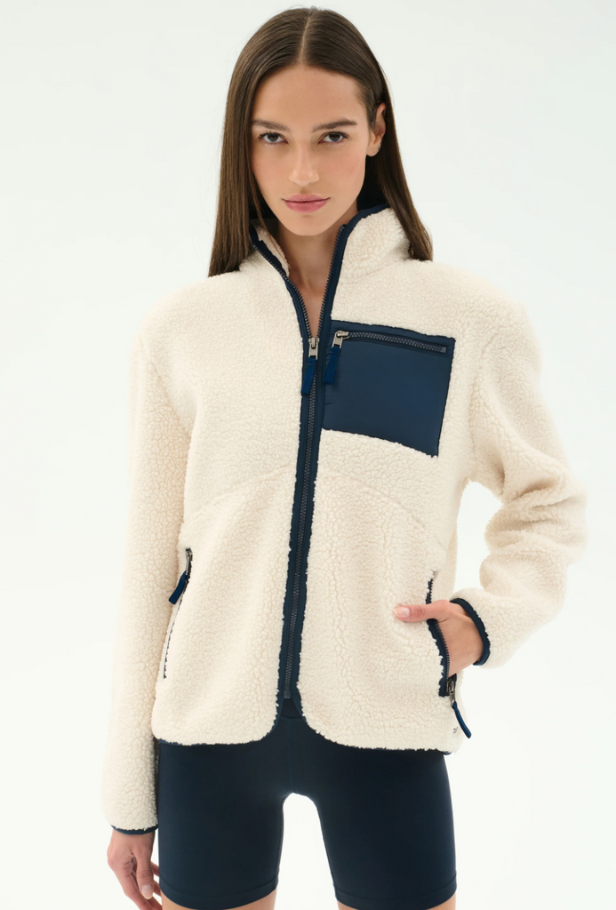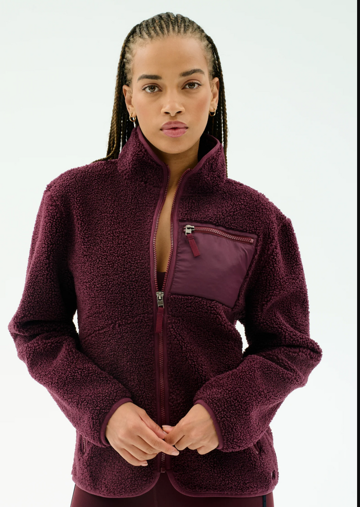 Our full zip sherpa jacket is a luxe warm outer layer to add to your wardrobe. Perfect to put on for chilly mornings workouts or coffee runs.