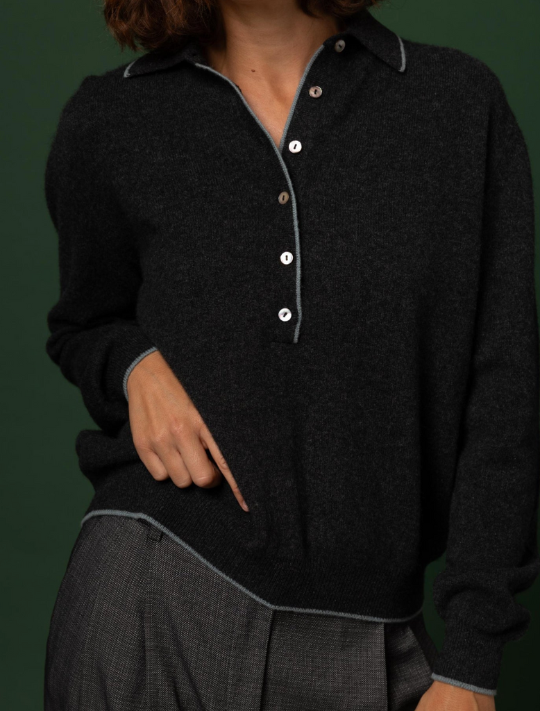 Stone Cashmere Polo Sweater