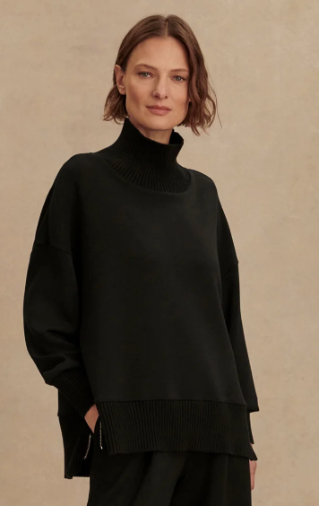 This essential sweatshirt in our DoubleSoft® fabric boasts an oversized fit and modern high-neck design. Complete with knitted cuffs, neck, and hem, it includes deep side splits for enhanced movement and style.