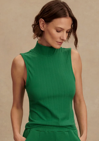 Made from a lightweight viscose-blend rib, this tank offers a luxurious hand feel and effortless stretch. With its contemporary mock neck and straight hemline, it's a versatile essential.