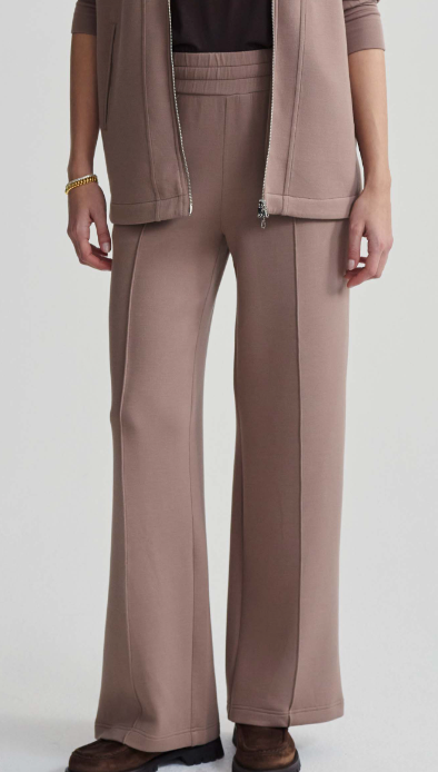 Experience unmatched comfort and style in these DoubleSoft® pants. Featuring a high-rise waist, wide-leg silhouette, elasticated waist with internal drawcord, and elegant pink tuck detailing, they're a versatile wardrobe essential.