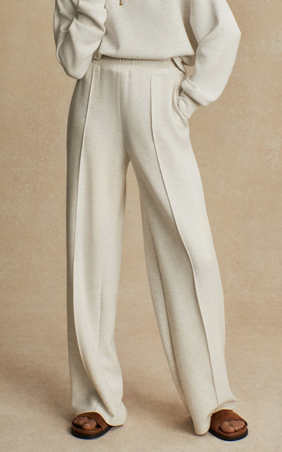 Experience unmatched comfort and style in these DoubleSoft® pants. Featuring a high-rise waist, wide-leg silhouette, elasticated waist with internal drawcord, and elegant pink tuck detailing, they're a versatile wardrobe essential.