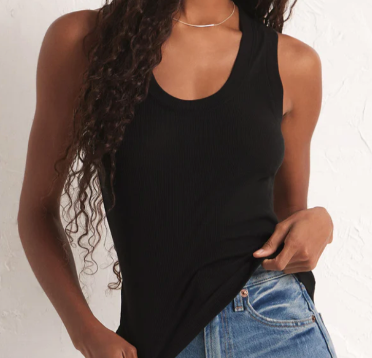 So comfy you can live in it! The Sirena Rib Tank is made from a cotton spandex rib knit fabric that was given a special wash for extra softness. With its sleek silhouette, this tank makes the perfect summer layer, no matter the weather.