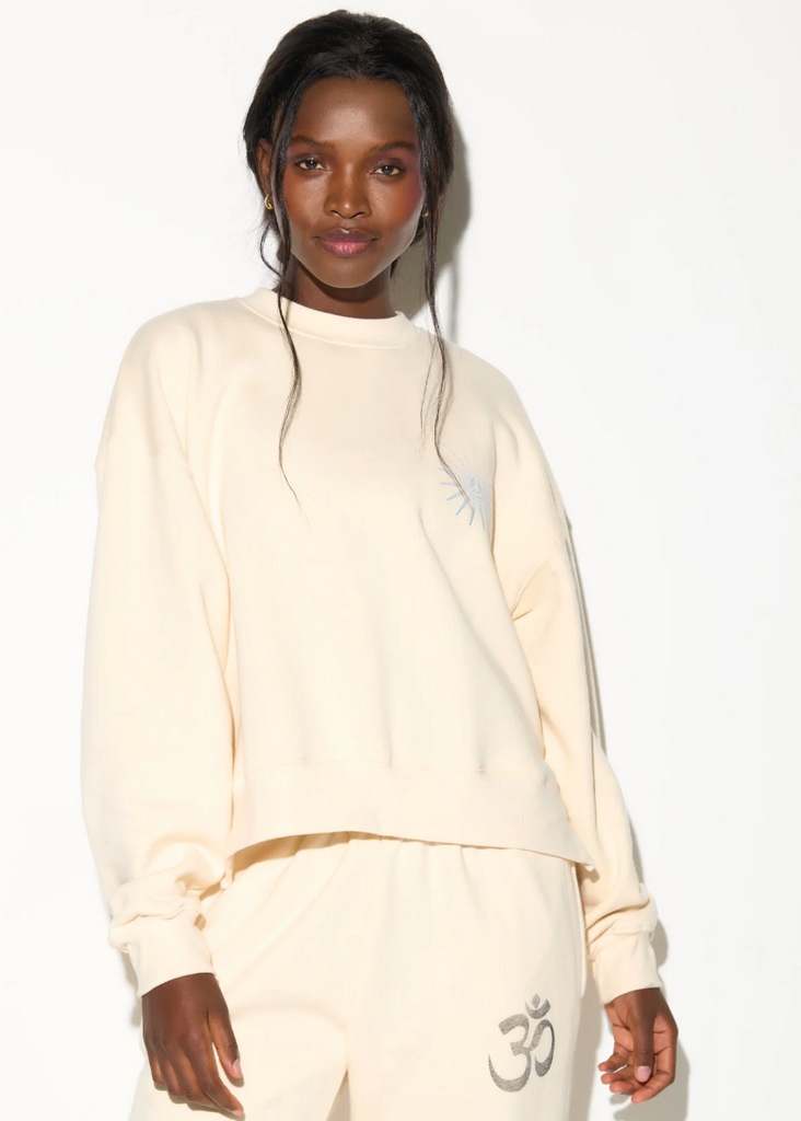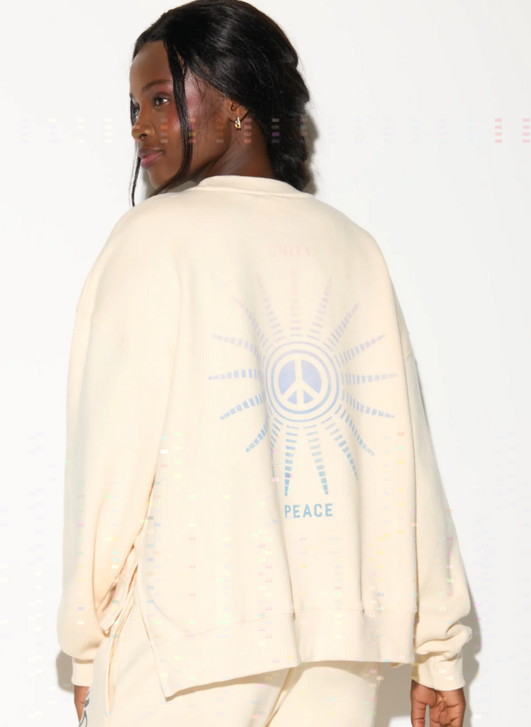 Your spirit at ease, your heart in harmony. The Bex Crew features a relaxed fit, high/low body, and a bold reminder that we rise stronger together.