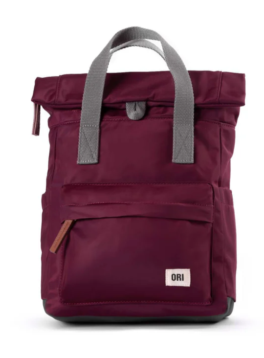 The Canfield comes in both Recycled Canvas and Recycled Nylon options. The Nylon has a shiny look and smooth feel, and the Canvas has a textured look and matte feel. See our Sustainability tab below for more information.